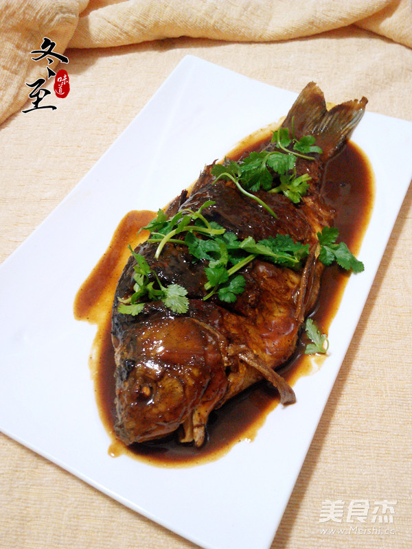 9.待汤汁粘稠时浇在鱼上,撒上香菜段即可
