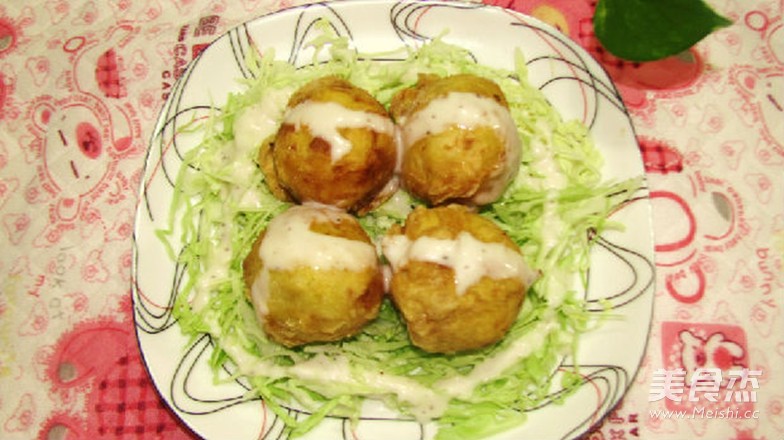 用土豆做的章鱼小丸子,加了丘比沙拉汁,味道更加的好,加上土豆软软的口感,真的是美味。。。