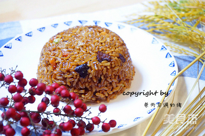 肉丁200克 毛笋150克 干香菇6朵 胡萝卜100克 青豆200克 大米300克