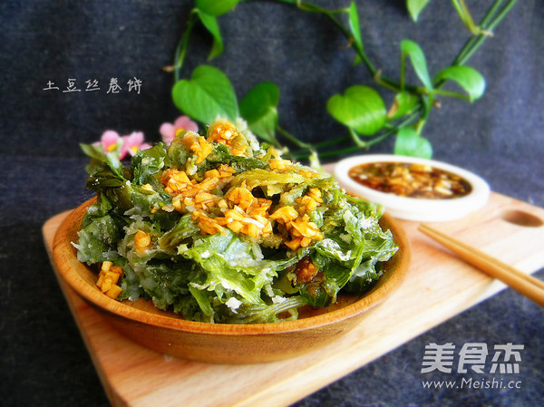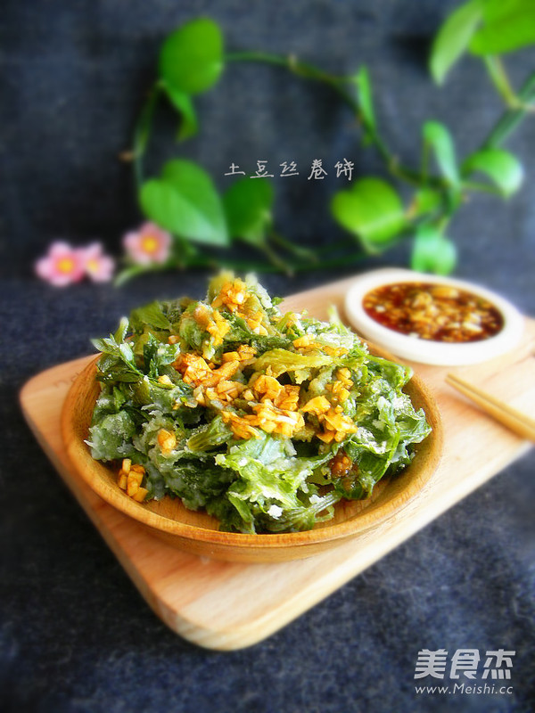 大多数人吃芹菜会把芹菜叶扔掉,其实芹菜叶的营养价值也是很高的,只要是芹菜叶完整,没有虫眼之类的,完全可以留下烹饪。芹菜叶可以烙饼,包馅,凉拌……吃法多,和很随意,看看我今天做的蒸芹菜叶吧,裹满面粉的芹菜蒸熟后用大蒜等调味,非常可口的小菜。