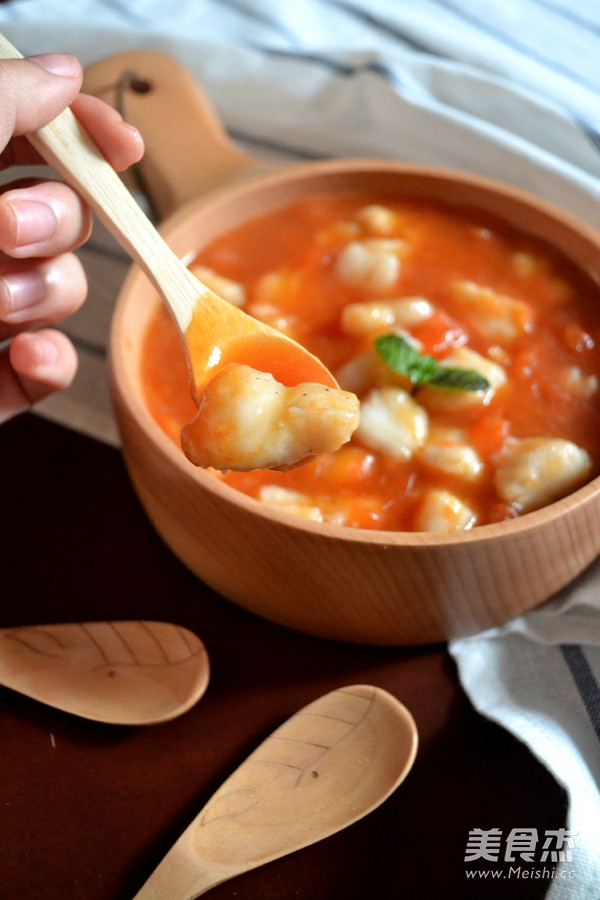 6.番茄炒出汁以后加入两勺番茄酱继续翻炒
