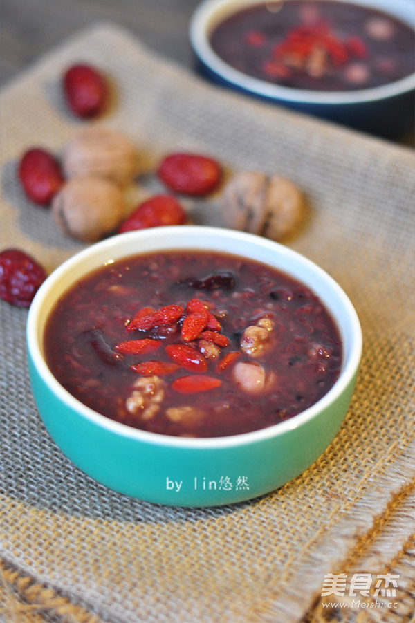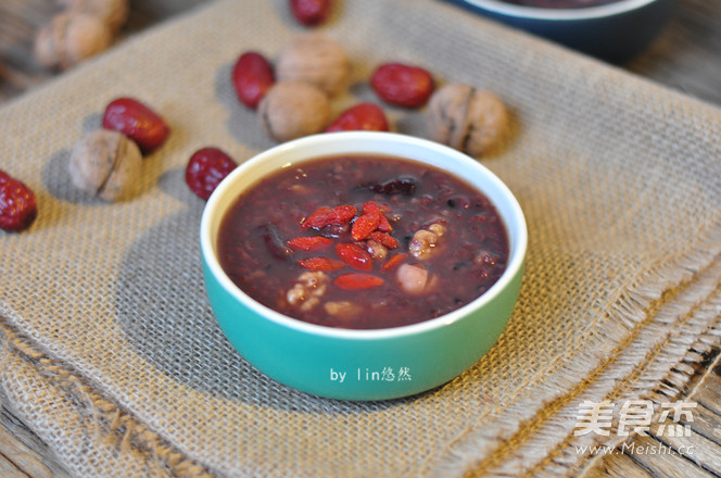 大米100克 黑米30克 红豆50克 花生30克 莲子20克 核桃40克 红枣8颗