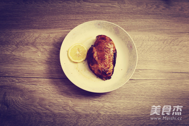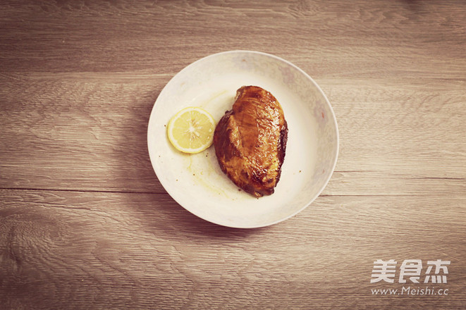 3.鸡胸肉用黑胡椒粉,少许盐和酱油,柠檬汁腌制下,然后用薄膜封好放冰箱10分钟。小伙伴也可以把鸡胸肉切薄,横到切2片,这次是懒人菜就没切,也不太影响口感。因为减肥,腌制没放生粉。