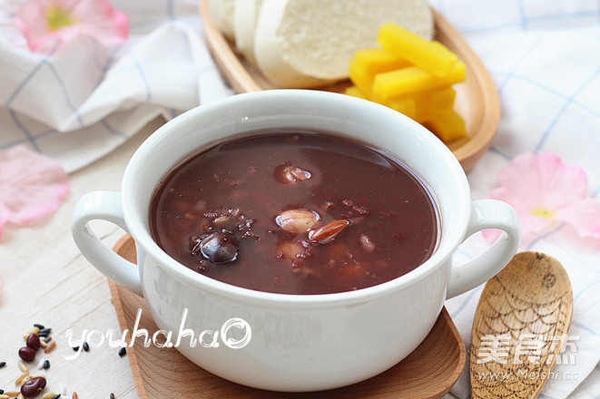 1.准备的材料;杂粮米包含:燕麦、糙米、麦仁、荞麦、高粱、红豆、薏米、腰豆、黑米、红曲米、青豆等;杂粮米和糯米正好是一杯,电压力锅自带的量杯