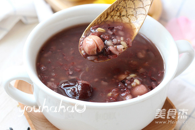 2.材料不用提前浸泡,淘洗干净放入锅里;煮粥用专门的内锅,此内锅专门用来煮粥、闷米饭;加入清水至一杯米的刻度,水量在1300ml左右,红枣洗净一同放入锅里