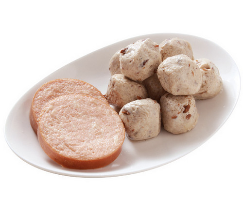 素火腿是大豆制品,吃起来的风味却与一般的火腿无差。素丸子也是由黄豆和香菇头制成的,香气和口感十足,是最常见到的素食材料。