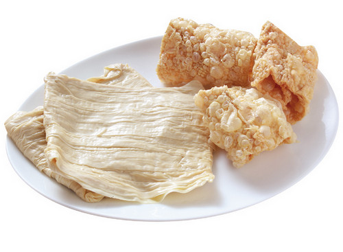 豆包和豆皮都是煮制豆浆时产生的产物,只不过豆皮有经过油炸这道手续,白色豆包要以冷冻保存,不然很容易变质。