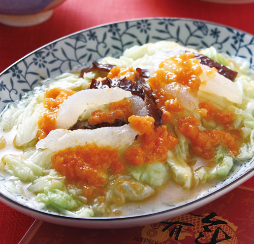 5. 再加入所有调味料拌匀,以少许太白粉水勾芡,最后再放入作法2的素蟹黄煮匀即可。