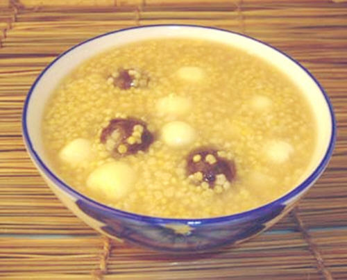 做法:将桂圆肉洗净与粟米同煮。先用武火煮开,再用文火熬成粥。