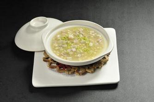 做法:将粳米洗净,用少许盐腌拌,放入沸水中熬煮。把淮山药、芡实用水稍浸过,去除杂质,洗净。将粳米、淮山药、芡实放入锅内同煮,待粥成时,加猪油、盐调味即可。