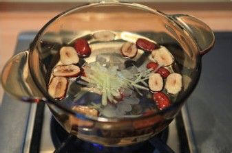 3、锅中倒入500㏄的水,以中火煮滚,加入所有材料煮开,续煮约5分钟即可饮用。