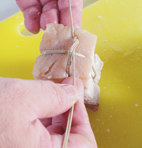 切块,就能切得平整好看;绑上绵绳的目的是避免肉块久煮后散开。