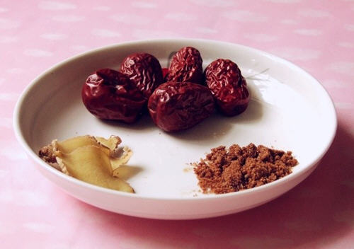 材料:生姜3片、去籽红枣5颗、白术15公克。