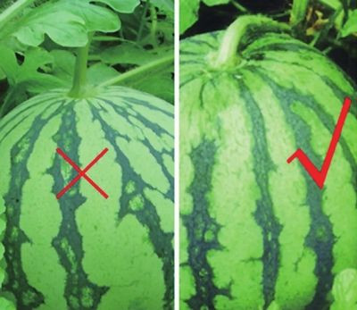 观果形。买瓜时如果遇到畸形瓜,外观呈“葫芦”状,扁平瓜、扁头瓜、尖嘴瓜、大肚瓜等都属于畸形果,西瓜狭窄的部分,吃起来味道不佳,畸形果多是败育或者受粉不良或者其他原因所致,因此遇到畸形瓜一定不能购买。