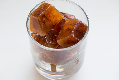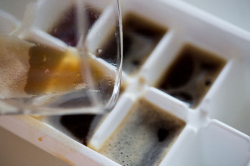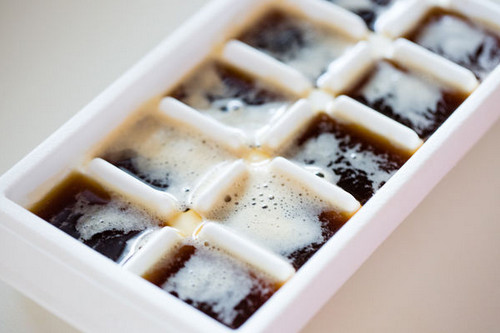 1、将浓缩咖啡放凉,倒入制冰盒中,放到冷冻库做成冰砖。