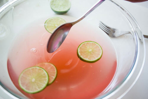 3、加入柠檬汁和小红莓汁搅拌均匀即可。
