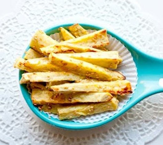 3、入烤箱前,撒上些微白糖,400度F烤15~20分钟至薯条呈金黄色即可。