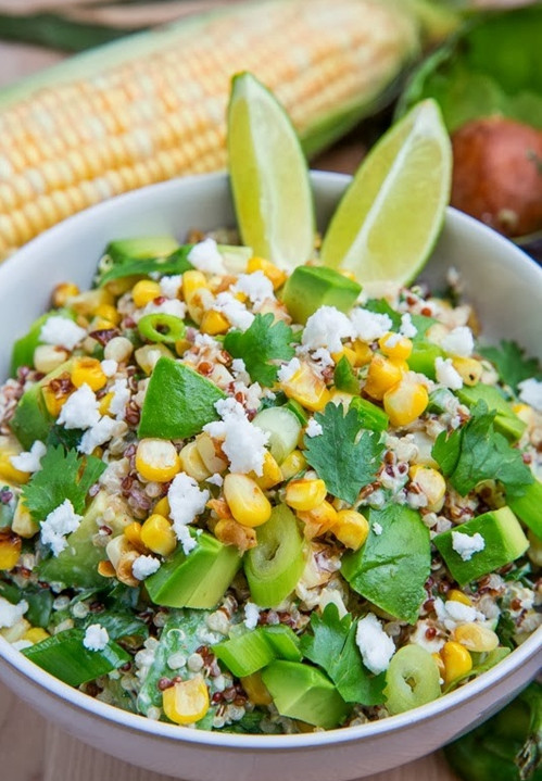 煮好的玉米粒及藜麦与牛油果、京葱、欧芹等喜欢的香草一起拌一下,再加上青柠、盐、橄榄油、胡椒等调味,就是另一道营养丰富味道清爽的沙拉,做法也不难,大家可以试试看。