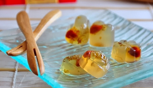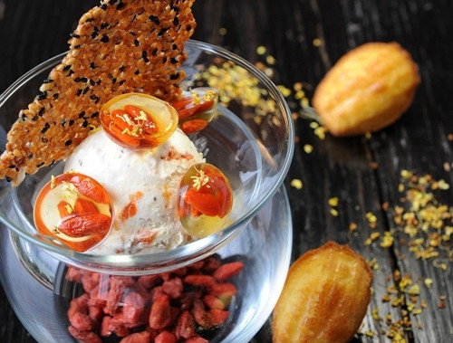 ① 作为甜品的点缀,枸杞子贡献的是热情的红色。