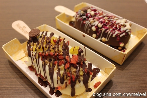 亲有没有想过,枸杞子居然可以是时髦冰品的主题呢?当然可以啊!在梦龙雪糕上,撒上枸杞子等果干,浇上黑白巧克力酱,一块雪糕立刻变成了食尚冰品,白色黄色红色巧克力色,有块有点有线条,奶味、果味、巧克力味,Big既立体又丰富。