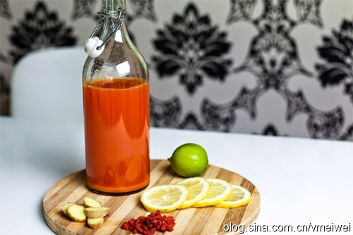 (柠檬汽水加了生姜和枸杞子,很妙的夏天保健饮料。图片来自网络)