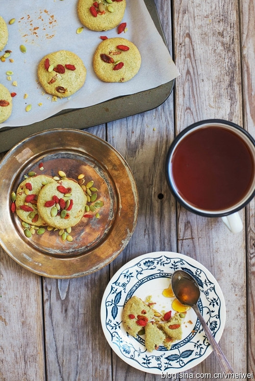 好吧,上面的不过是例牌,下面才会更好玩。枸杞子干其实是跟葡萄干一样一样的水果干,脑子里不要想着它是药,用起来就放得开啦。