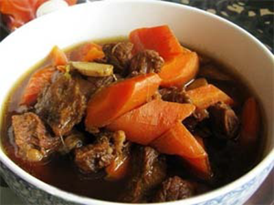7、临出锅前放入剩余洋葱,略炖片刻即可。好吃的胡萝卜炖牛肉就做好了,可以上桌享用了。