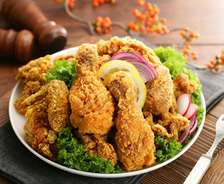 鸡肉经油炸后大量吸收油脂,所以热量相对来说也会大大增加,很容易导致胖肥,吃多后还会有致癌物质,所以炸鸡很不利于健康,所以大家要少吃炸鸡。 炸鸡的热量: 1个炸鸡腿(120.0克)热量是:313大卡 炸鸡:标准(100克)热量是:261大卡 炸鸡的营养信息表含量(每100克) 热量:261.06克大卡 碳水化合物:3.05克 脂肪:21.80克 蛋白质:13.24克 纤维素:0.08克 有关炸鸡的做法大全大家可以参考:http://www.jucanw.com/zt/65.html