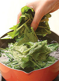 青菜类要烫得好吃,就要水一滚立即把菜丢下去,再次水滚就可捞起,利用余温将菜完全熟成,并在烫完后加1小匙沙拉油隔绝空气,以免青菜氧化变色影响食欲。