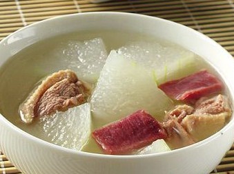 功效:冬瓜性平,冬瓜皮能利水、除热;火腿具有养阴和胃、健脾开胃的功效。此方可消暑养胃,适用于脾胃虚弱、胃口不佳的人。