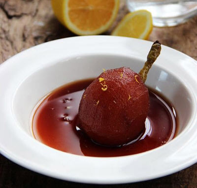 原料:红酒500ml,水晶梨一个,冰糖适量,肉桂粉少许,柠檬半个。做法:水晶梨去皮、去核,对半切开,放入泡有柠檬的清水中防止变色;将红酒倒入锅中,放入冰糖、肉桂粉,煮至冰糖溶化;放入水晶梨,中火煮至红酒翻滚,小火继续煮一个小时后关火,放凉后再放入冰箱中冷藏,几个小时后便可食用。