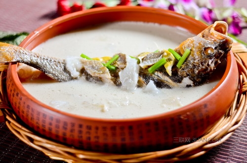 如果是整条鱼炖汤,可以先将鱼两面稍稍用油煎一下,鱼煎好后放生姜、料酒爆香。加冷水大火烧开,水烧开前千万别翻动鱼身。小火慢煮至汤白时加一点醋,起锅前再加盐和鸡精,撒上葱花即可。
