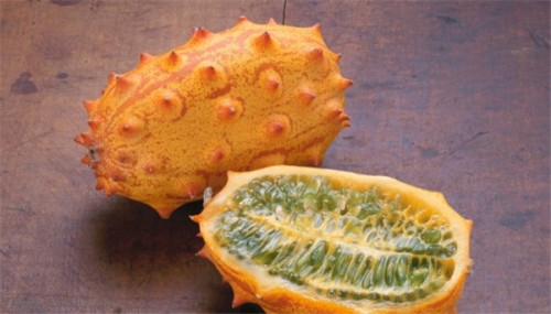 刺角瓜的外表看上去就像某种有毒的水生生物,但实际上它非常软且多汁的水果,吃它的时候你会想起黄瓜。刺角瓜原产于非洲,两名种植它的新西兰人给它起名Kiwano。坚硬的外壳正好拿来做刺角瓜、香蕉和凤梨冰。