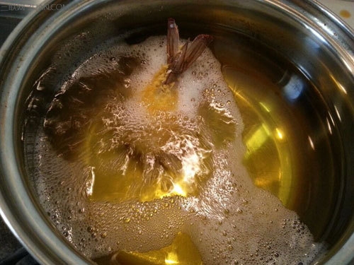 起油锅,待油温升高后,放入虾小火煎炸至金黄,即可沥油捞出。