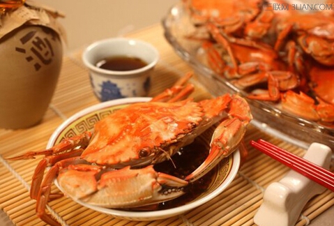 此外,吃蟹时最好能有姜、醋等配伍,这是因为蟹性凉,而生姜性温,具有温中散寒解毒之功,醋除了调味外,还具一定抑菌功效。