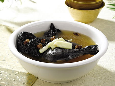 原料:雌乌骨鸡1只(重约1000克),生地黄、饴糖各150克。