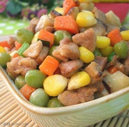 先将鹌鹑宰杀,去毛、内脏,洗净;将鹌鹑肉、猪肉切成玉米粒大小,盛入碗中,加入鸡蛋清、味精、黄酒、淀粉拌匀;松子仁下沸水锅煮熟捞出,沥干水分,锅中放生油,烧至五成热,将松子仁下锅内炸至金黄色捞出;将玉米仁倒出,沥干水分,放鸡汤、味精、精盐、麻油、胡椒粉、湿淀粉调成芡汁待用;炒锅上火,放油烧至四成热,投入鹌鹑、猪肉粒,用勺划开,泡2分钟,捞出沥干油;原锅倒入玉米粒,并将鹌鹑、猪肉放入炒锅,烹入黄酒,倾入调匀的芡汤,烧开后加入猪油推匀.撒上松子仁即成。