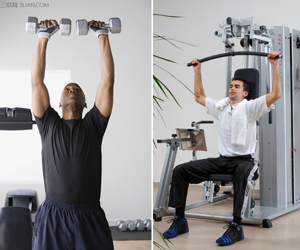 ②在练胸大肌的同时,应加强上臂肱三头肌的锻炼。没有发达的三头肌,就不可能卧推起大重量的杠铃,也就不能练出发达的胸部肌肉。