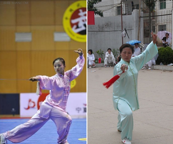 太极剑具有独特的风格特点,动作柔和、舒缓,美观大方,体静神舒,内外合一。由眼神到上肢、躯干、下肢,上下照顾毫不散乱,前后连贯、绵绵不断,需要有良好的支配和平衡能力,因此需要大脑在紧张的活动下完成。