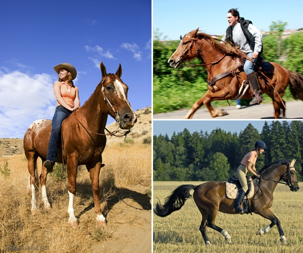 将脚蹬由基本骑乘时缩短二到四个革洞,骑手的背部稍微往前凹,上身轻度前顷,臀部浮在马鞍上约五公分,背部伸长,头抬起来向前看,大腿、膝盖紧贴着马鞍,小腿位于肚带后方贴在马肚上,脚跟向下踩,这就是前顷姿势,快步与跑步时都一样。