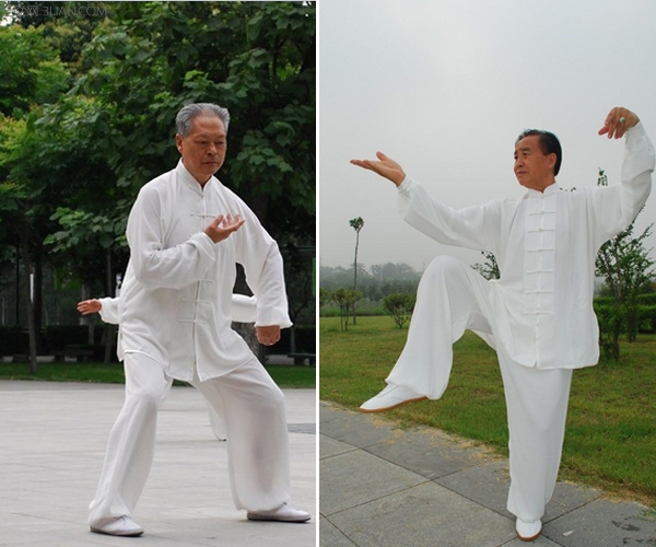 太极拳动作缓慢、走圆划弧、屈膝坐髋、重心低沉、连绵不断,又因太极拳动作温和,没有精神及体力上的高度紧张,特别适合中老年人及慢性病患者,是中老年人健身运动的最佳选择。