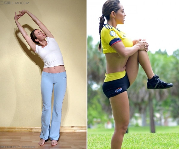 做法:直立,抬起左脚置于身后,用左手抓住左脚;膝盖尽量并拢;用左手慢慢将左脚拉向臀部,直至四头肌有拉伸感;保持15-30秒;换腿。