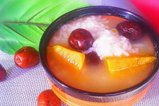 1、北瓜洗净去皮后切小块,大米淘洗干净后浸泡30-40分钟,红枣洗净去核备用。
