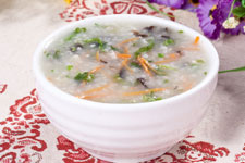 主料:大米85g,糯米15g,海带丝40g,橘子皮2条。辅料:盐,味精,香油。