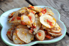 5、也可以把洋姜洗干净后切薄片或者细丝,用盐腌制数天之后食用,用辣椒油,糖,芝麻油调制更好。