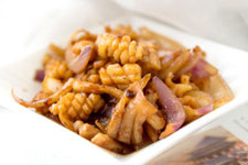 主料:鱿鱼1条,洋葱1个。调料:生抽半茶匙,豆瓣酱1大茶匙,植物油适量,白糖半茶匙。