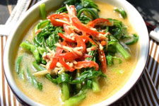 4、把煮好的腐乳汤淋在茼蒿菜上,搅拌一下即可食用。