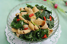 主料:车前草200g,鸭肠200g,枸杞10g。辅料:麻油,盐,食用碱,白糖,鸡精,醋。