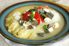 3、放入干贝丝,小火慢炖至娃娃菜软身,放适量盐搅匀后即可出锅。