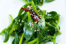 主料:穿心莲100克。调料:盐1/2茶匙,鸡精1/3茶匙,花椒1小把,干辣椒2个,香油1茶匙,白芝麻,植物油1汤匙,白糖1/3茶匙。